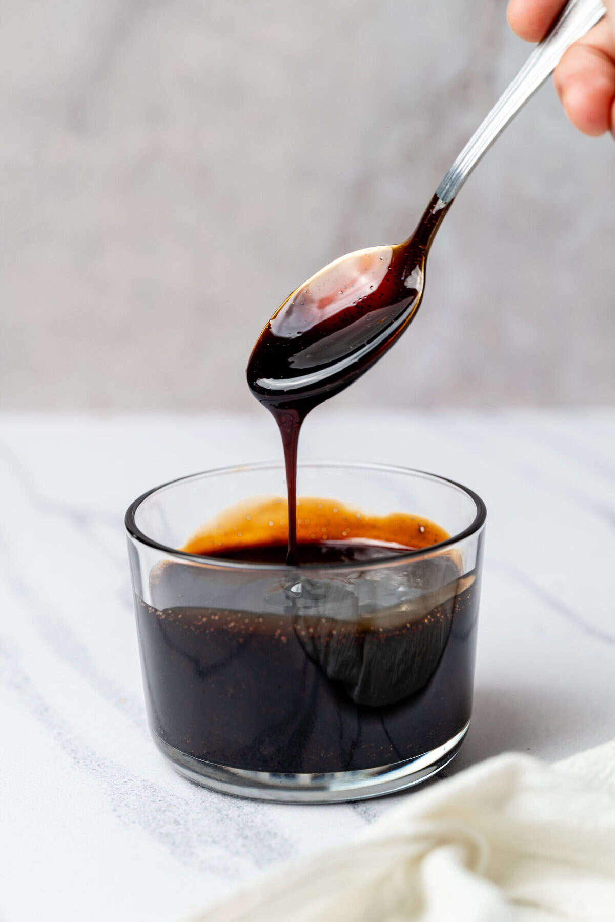 Be sure to stir your reduction frequently and monitor the consistency closely. Once the balsamic vinegar has reduced into a glaze, it will appear almost velvety and be as thick as maple syrup.