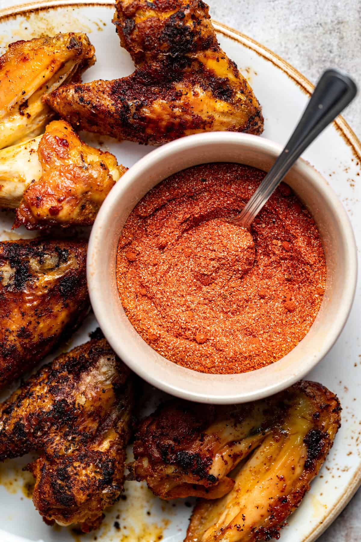 There are numerous ways to use this buffalo wing seasoning. Of course, the first option is to make chicken wings by grilling, air-frying, frying, or baking plain wings and sprinkling this seasoning mix on them right after cooking, while they are still hot. Another option is to mix some seasoning with a bit of olive oil and brush it on the wings before grilling, baking, or, my favorite way, air-frying.