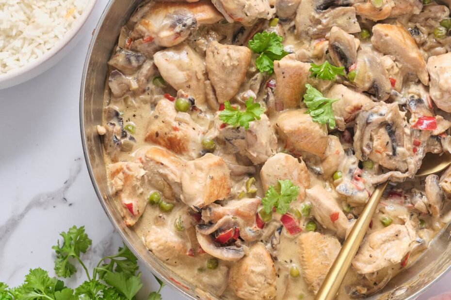 This creamy, comfort-food classic Chicken À La King combines mushrooms and peas in a rich sauce—perfect over rice or noodles! You know what I love… Read More »Chicken À La King