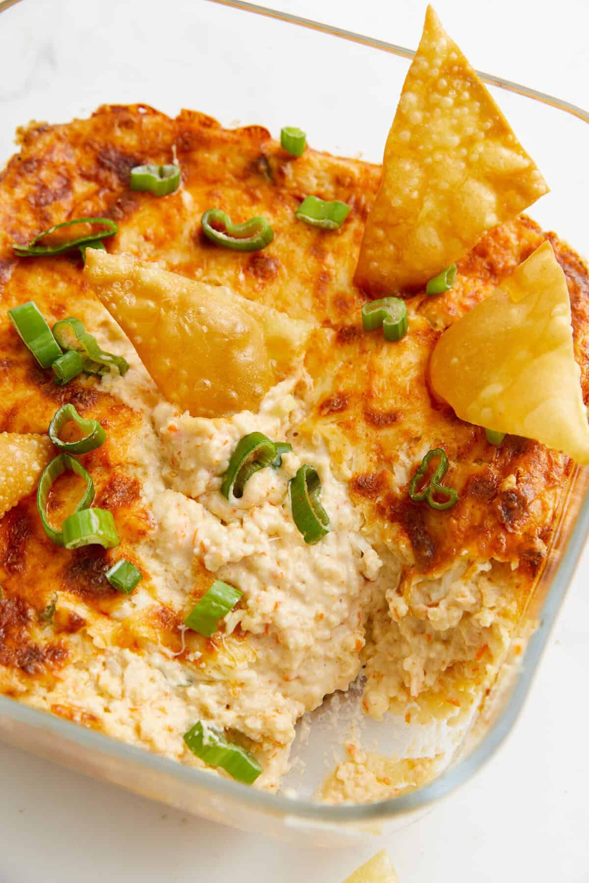 Though you can make a few tweaks to the recipe to improve the health profile, crab Rangoon dip isn’t really something I’d call healthy. It’s a decadent and delicious dip loaded with fat. When eaten in moderation, it can be part of a healthy, balanced diet, though. If you want to upgrade the recipe for improved healthiness, there are a few things you can try. First off, swap the regular sour cream for a low-fat choice. Additionally, you could trade the cream cheese for Neufchâtel to reduce fat and switch out the regular mayonnaise for a low-fat version.