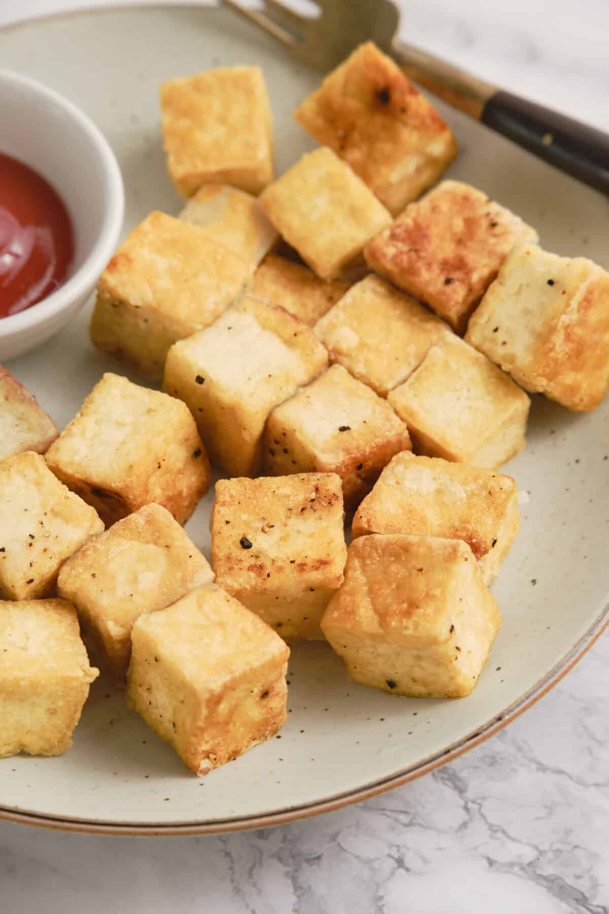 Fried tofu should be cooled to room temperature before refrigerating in an airtight container for up to 5 days. It can then be reheated in the oven or air fryer to restore its crispiness. Freezing is not the best way to store leftover tofu, but if you need to, freeze the cubes on a lined baking sheet or tray before placing them in a freezer bag for up to 3 months. Defrost them overnight in the fridge before reheating.