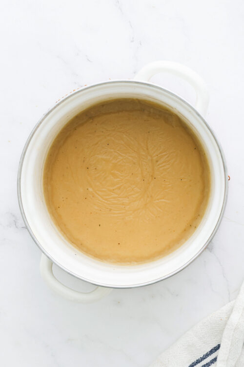 In a small saucepan, melt the butter over medium-low heat. Gradually stir in the flour while whisking continuously. Cook for about 2 minutes until the mixture becomes smooth and lightly golden.