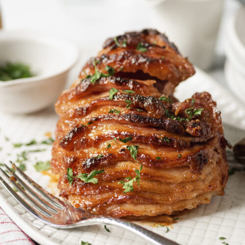 Make sure your leftover ham has cooled to room temperature, and then transfer it to an airtight container. Refrigerate it for 3-4 days, or freeze some slices in a freezer-safe bag for up to 2 months. Thaw it in the fridge overnight, and then reheat it in the oven at 350°F for 15-20 minutes, until it’s completely warm. If the portion is larger and you need a longer cooking time, you may want to add a splash of water so that it doesn’t dry out while heating up.