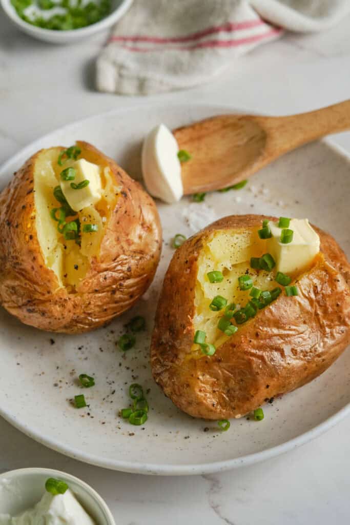 If you were to ask my kids what they like on their baked potatoes, all three would say, bacon—obviously a solid choice. Aside from cheese, there are so many creative ways to load your spud. I usually like to top mine with something hearty like Chili or Air-Fryer Steak Bites. This Juicy Grilled Chicken Breast Recipe is another worthy pick. And if you’re feeling fancy, try these deliciously tender Braised-Beef Short Ribs.