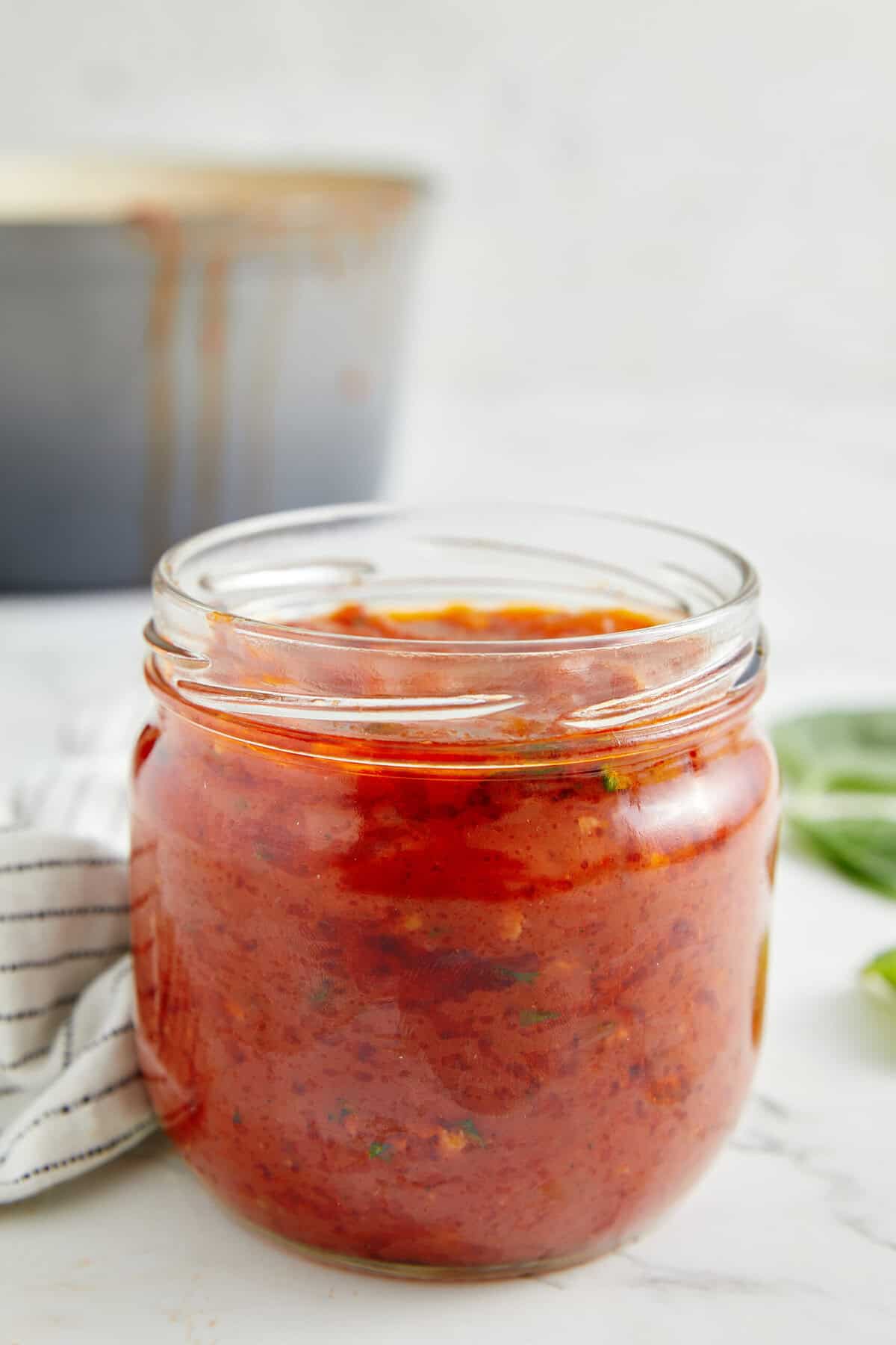 Store your leftover marinara sauce in a well-sealed jar and refrigerate for up to a week. You can also transfer it to a freezer-safe container and freeze for 3-6 months, making sure to thaw it in the fridge before serving. Then dish it out cold or heat it up in a pot on the stove over medium heat.