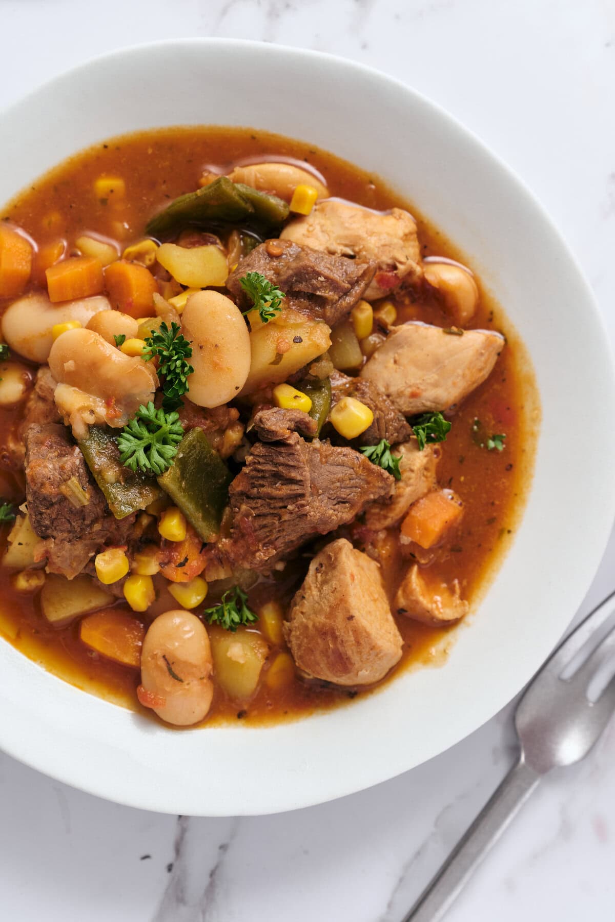 Yes, you can absolutely use just one protein in this recipe. If you choose to use only beef, increase the amount to about 3-4 pounds of stew meat to maintain the hearty nature of the dish, or use 3-4 pounds of chicken if you prefer poultry. The cooking method remains the same, just simply brown your chosen protein in batches and proceed with the recipe as written.