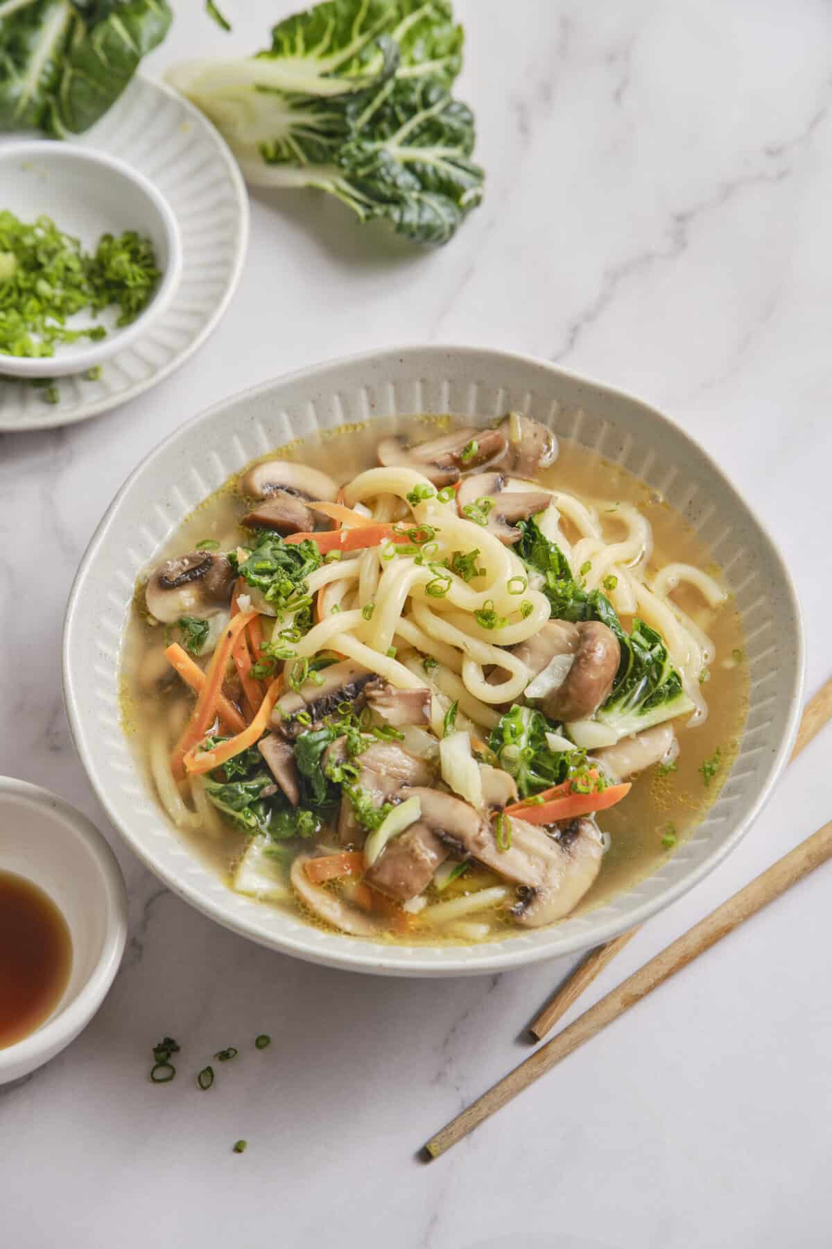 Want to create a classy dining experience for you and your family or guests? Top your mushroom ramen with freshly chopped green onions and serve it with Sunomono (Japanese Cucumber Salad), Sweet Potato Sushi Roll, Asian Cabbage Salad, or Air-Fryer Shishito Peppers. And if you’re looking for vegetarian sides with a bit more protein, try pairing your mushroom ramen with Okonomiyaki (Japanese Pancakes) or Soy Sauce Eggs.