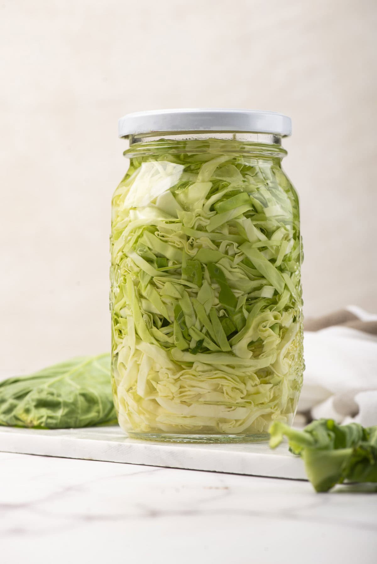Pickled cabbage can be stored in its airtight jar for up to 1 month, and it is ready to enjoy whenever you want.