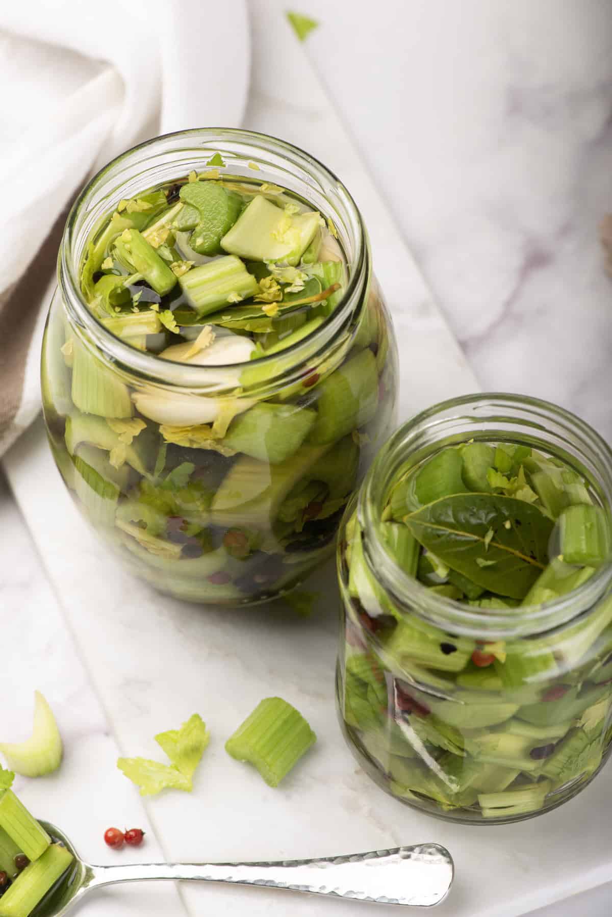 The moral of that story is to use a recipe when making pickled vegetables. This recipe has the perfect balance of sweet, salty, and tangy. Using the basic pickling liquid, you can also swap out the celery for cucumbers, cauliflower, carrots, cabbage, and other veggies. Or you can combine different veggies for additional flavor and color.