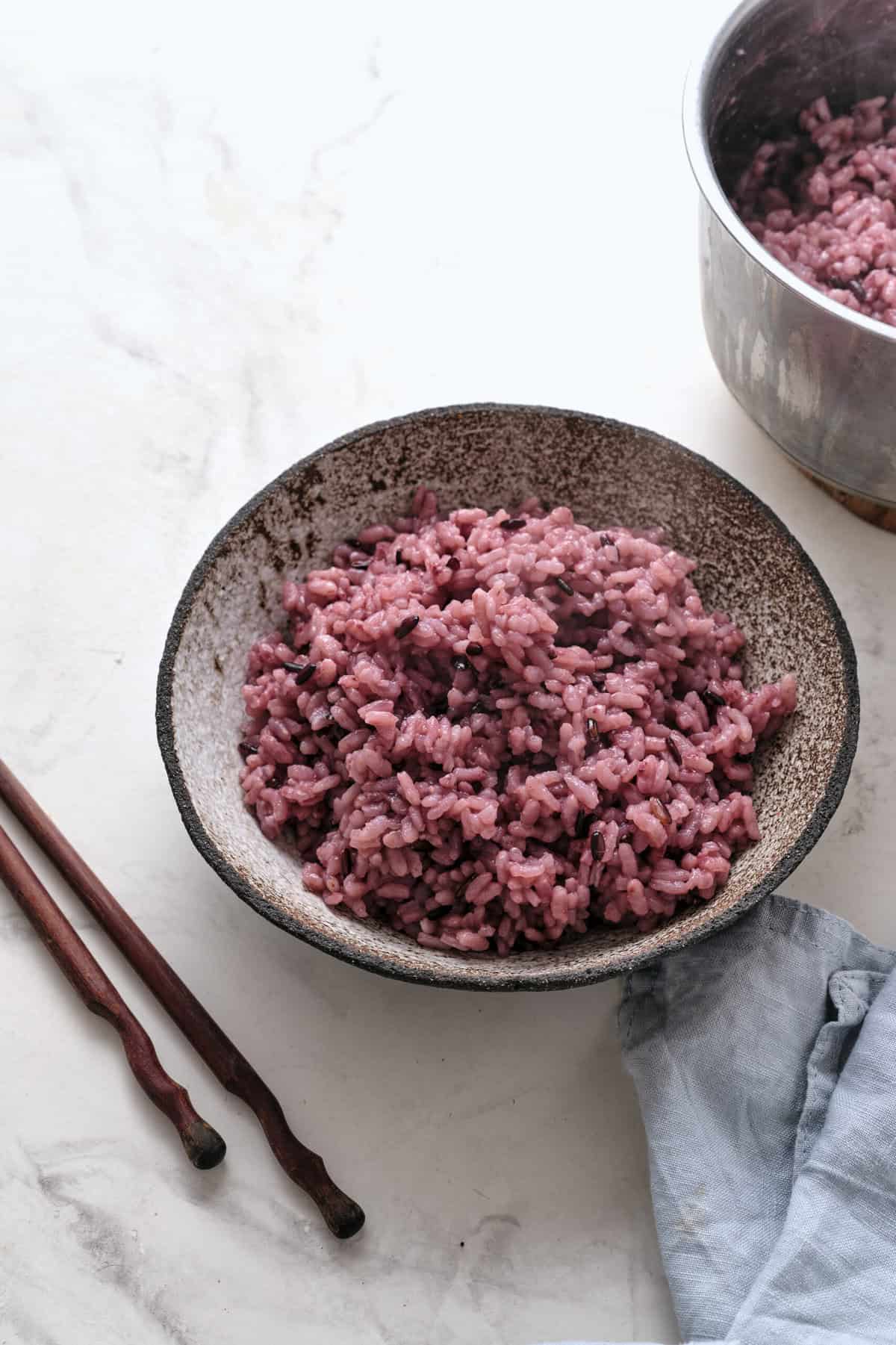 On its own, purple rice can dazzle like a bowl of amethyst beads. But the meal gets even more lavish when you dish out Honey Sriracha Chicken, Instant Pot Beef and Broccoli, or Asian Turkey Meatballs. On the other hand, you could choose from some of my favorite vegetarian mains, such as Stuffed Mushrooms, Vegetable Egg Foo Young, or Strawberry Walnut Salad. As you can see, purple rice goes great with a wide range of spicy, sweet, and savory dishes. It’s so versatile!