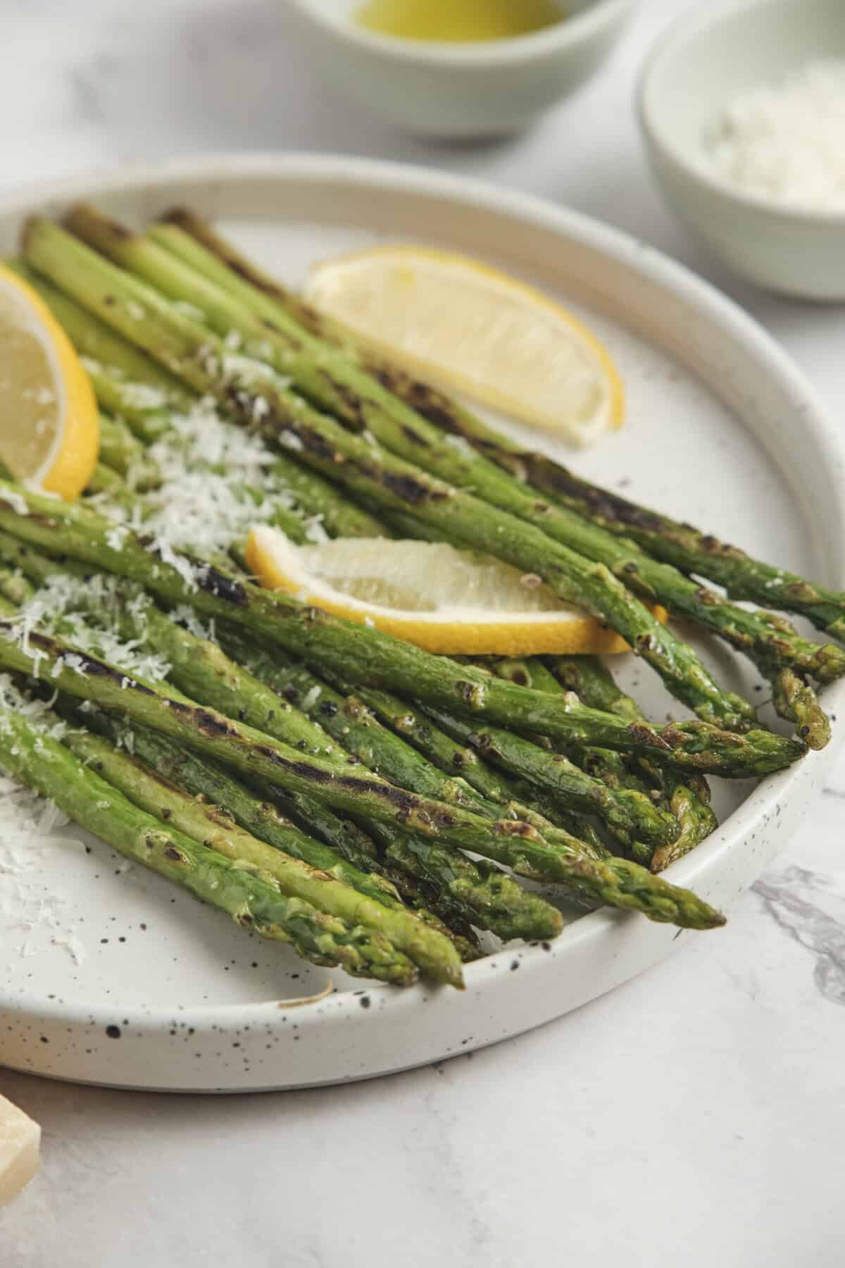Let your roasted asparagus cool to room temperature before storing it in an airtight container. Then, refrigerate it for 3 to 5 days. I don’t recommend freezing the spears because this will make them soggy. To reheat roasted asparagus, simply transfer them to an oven-safe dish and bake at 350°F for 10 to 15 minutes.