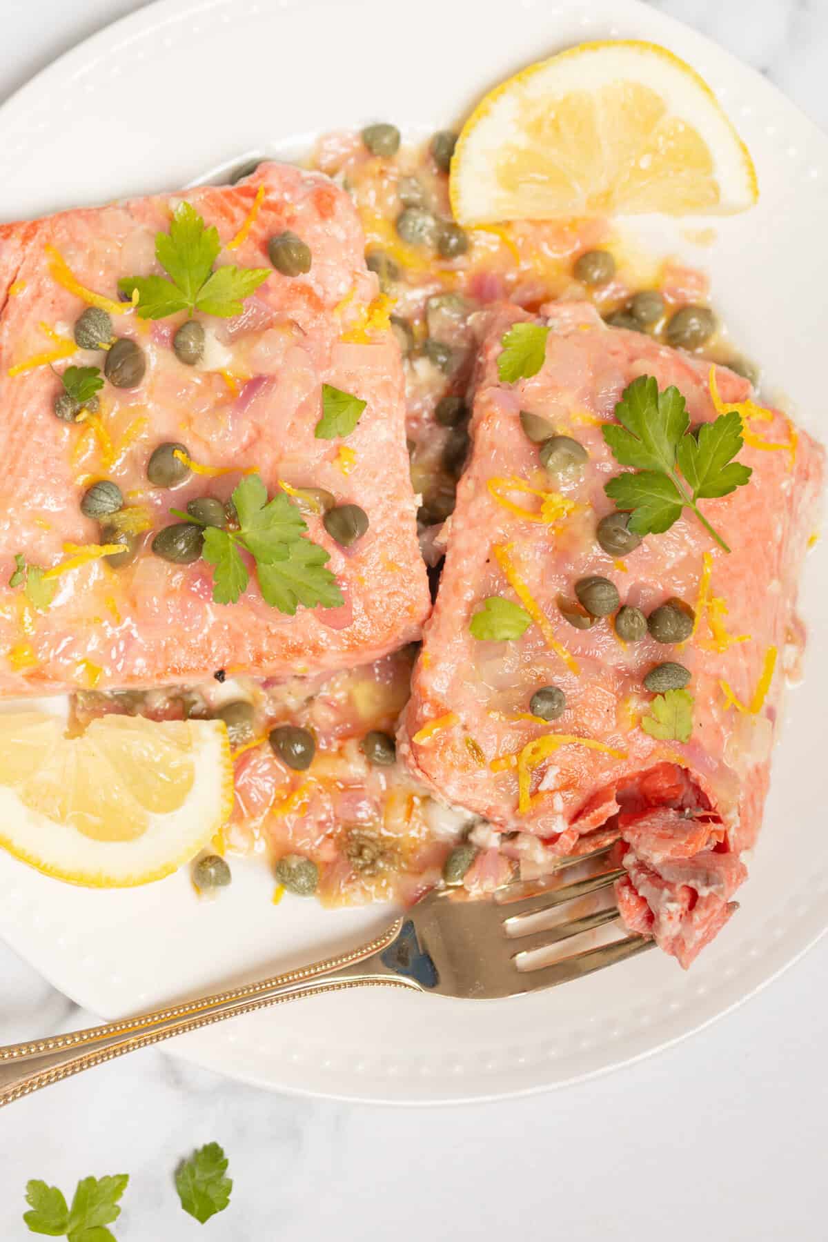 In just a few simple steps, you’ll create delicious salmon that’s slightly crispy on the outside and moist and fork-tender inside. The best part? It’s all bathed in that bright, buttery sauce that will have everyone around the dinner table coming back for seconds. Serve it with some easy sides such as steamed vegetables with a crusty baguette, and you’ll have a meal that’s sophisticated enough for any occasion yet comforting enough to become a regular favorite.