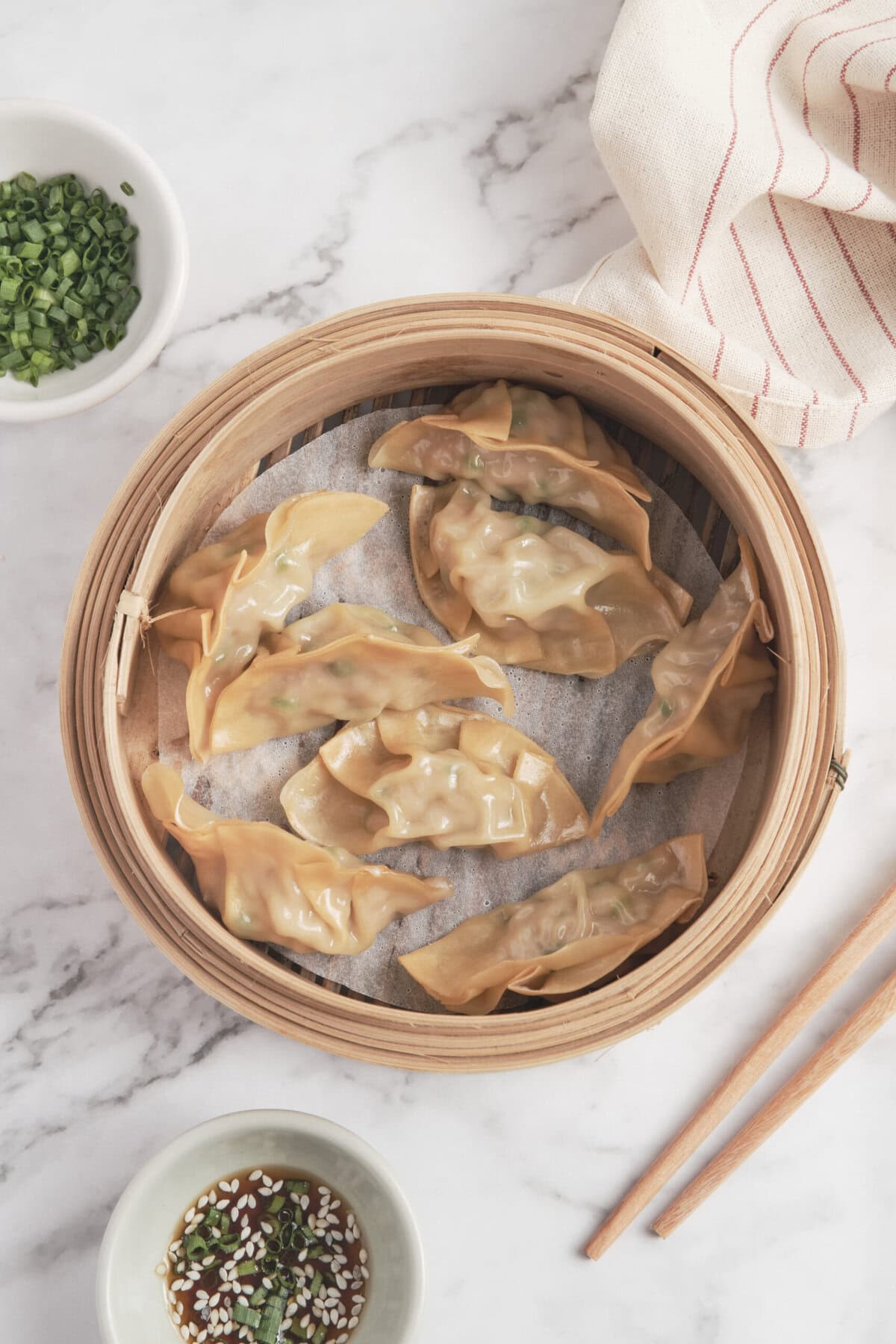 Store your cooled dumplings in an airtight container in the fridge. They should stay fresh for up to 3 days. When it’s time to reheat, steam them for 5 minutes. I also like to pan-fry them—honestly, I think leftover dumplings taste better with a slight crisp to them. Either way, add a splash of water to keep the wrapper from getting too chewy.
