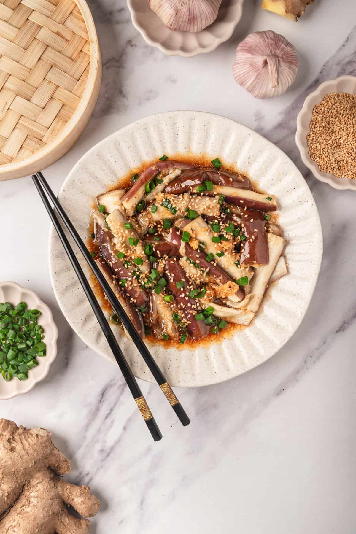 One of my all-time favorite vegetable dishes at Chinese restaurants is steamed eggplant. It’s typically served in a deliciously sweet, tangy, silky sauce with the perfect hint of salt. I’m often torn between this dish and baby bok choy—so I usually end up getting both. I frequently make bok choy at home, but it wasn’t until recently that I started making this eggplant dish regularly, too.