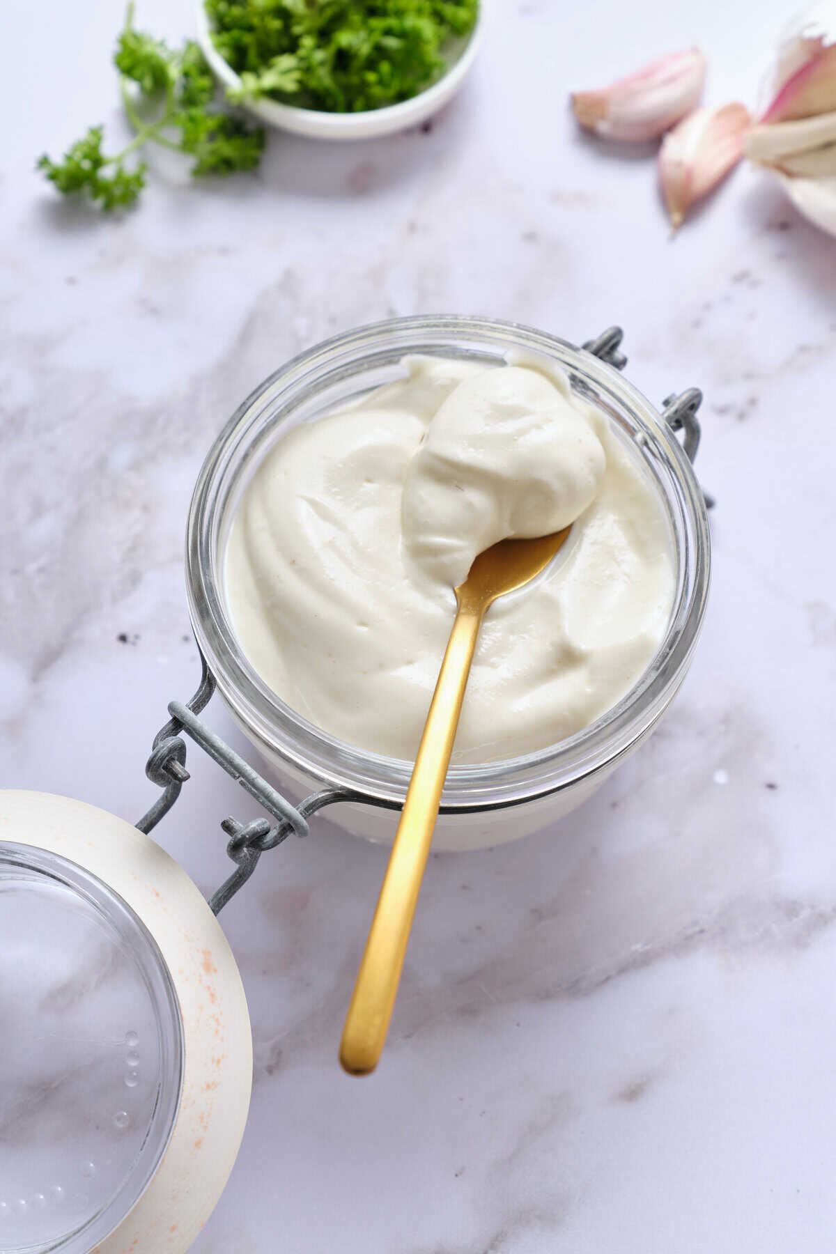 Temperature also plays a big role. Using cold ingredients straight from the fridge can prevent the emulsion from forming. For thick, creamy mayo, make sure all your ingredients—especially the soy milk and oil—are at room temp before you start.